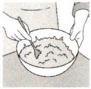 答案:1. Add 2. Pour 3. Cut up 4. Bake 5. Boil 6. Mix