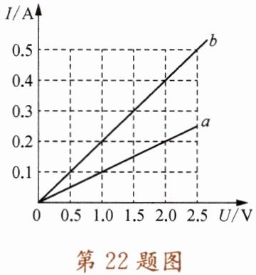 22. 通过电阻$a$、$b$的电流与其两端电压的关系图像如图所示。由图像可知,电阻$a$的阻值为