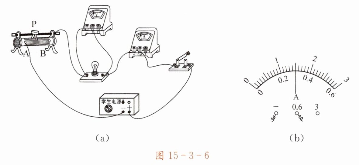 (3) 排除故障后,重新开始实验,电源电压保持不变,闭合开关,电压表示数为0.5 V,电流表示数为0.12 A;移动滑片P,当电压表示数为2.5 V时,灯泡正常发光,电流表示数如图15-3-6(b)所示为