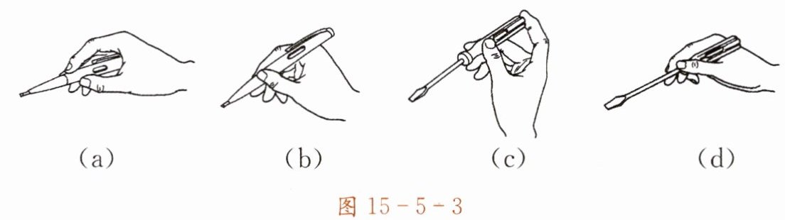 2. 在图15 - 5 - 3中,测电笔的握法正确的是(