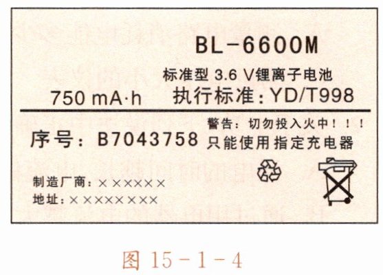 例题3 手机、数码相机等常采用可充电的锂离子电池作为其内置电源。图15-1-4是某锂离子电池的铭牌,试估算该电池充满电后所储存的电能。