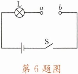 6. 如图所示,不计温度对灯丝电阻的影响,电源电压保持不变。当在点$a$、$b$间接入“6 V 6 W”的灯甲时,闭合开关,灯L恰能正常发光;断开开关,在点$a$、$b$间接入一个“6 V 4 W”的灯乙后,再闭合开关,下列说法中错误的是(