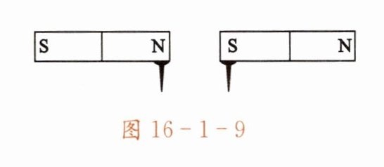 7. 如图16-1-9所示,两块条形磁体的一端各吸附了一根小铁钉,当两磁体相互接触时,小铁钉将会(