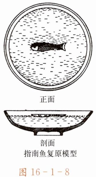 5. 北宋时期的文献中就出现了关于“指南鱼”的记载。“指南鱼”是用一块薄薄的铁片做成的,形状像鱼,将其磁化后放入盛水的碗中,能浮在水面上,静止时鱼头指向南方,如图16-1-8所示。关于“指南鱼”,下列说法中正确的是(