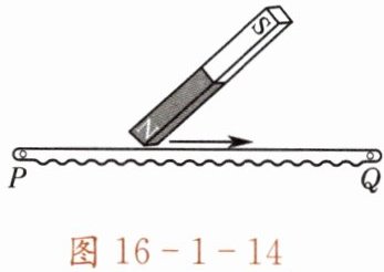 (1)如图16-1-14所示,PQ是一根钢锯条,拿条形磁体的N极沿图中箭头所指的方向摩擦钢锯条,钢锯条哪一端是N极?