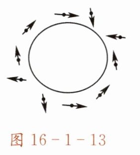 11. 在一个圆纸盒里有一块条形磁体,圆纸盒外放着一些小磁针,各磁针静止时N极的指向如图16-1-13所示。请在圆纸盒里画出条形磁体并标明它的N极和S极。