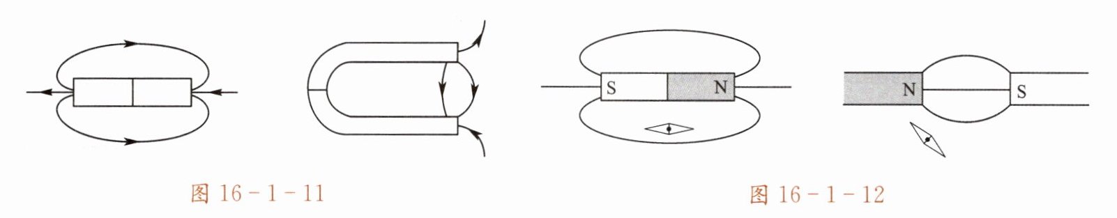 1. (1)图16-1-11中,左侧磁体为S极,右侧磁体为N极。