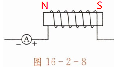 3. 如图16-2-8所示,电流表的连接是正确的,试在图中标出通电螺线管的N、S极。