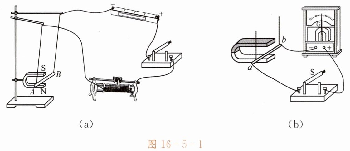 图16-5-1(b)中的开关闭合后,使导体ab在磁场中做切割磁感线运动时,电流表指针发生偏转,这表明闭合电路中产生了感应电流。所以,图16-5-1(b)是研究电磁感应现象的装置,利用这个原理可制成发电机。经过分析可知选项C正确。