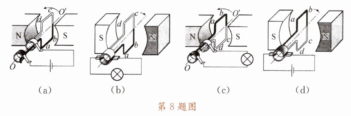 8. 在如图所示的电机模型中,交流发电机模型和直流电动机模型分别是(
