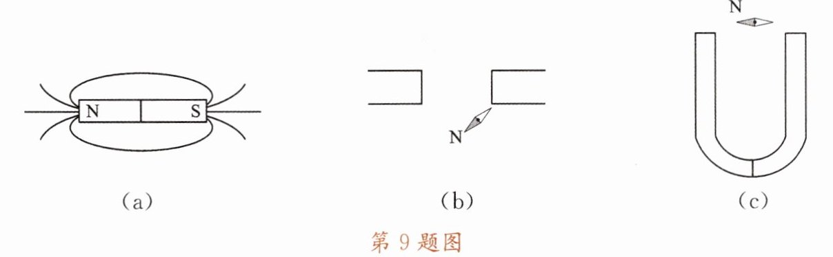 9. 在图中标出磁感线的方向或磁体的N、S极。