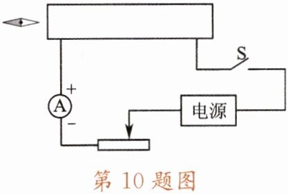 10. 电路连接正确,通电后小磁针指向如图所示(涂黑端表示N极)。请在图中标出螺线管的磁极、电源的“+”“-”极,并画出螺线管的绕法。