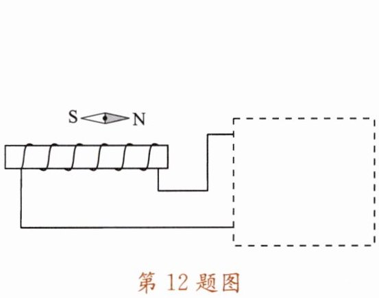 12. 如图所示,将电磁铁连入你设计的电路中(在方框内完成)。要求:电路能改变电磁铁磁性的强弱,使小磁针静止时如图所示。