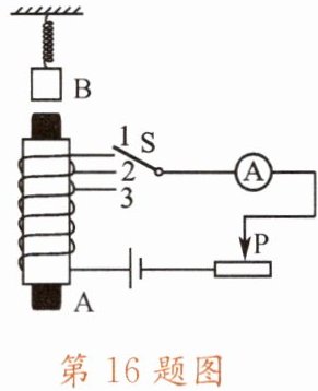 16. 如图所示,A是螺线管内的铁芯,B是悬挂在弹簧下的铁块,S是转换开关,要使弹簧的长度变短,可以采取的方法有(至少写出两种方法):