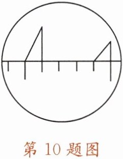 10. 雷达是利用电磁波来测定物体位置和速度的设备,它可以向一定方向发射电磁波(电磁波在空气中的传播速度是$3×10^{8}\ m/s$),当遇到障碍物时要发生反射。雷达在发射和接收反射回来的电磁波时,在荧光屏上分别呈现出一个尖形波。如果雷达监视屏上显示的发射和接收的尖形波如图所示,已知雷达监视屏上相邻刻线间表示的时间间隔为$1×10^{-4}\ s$,则被监视目标与雷达的距离最接近(