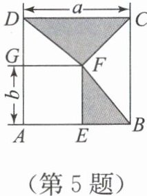 5. 两个正方形$ABCD$,$AEFG$如图摆放,边长分别为$a$,$b$。若$a^{2}+b^{2}=34$,$BE = 2$,求图中阴影部分的面积。