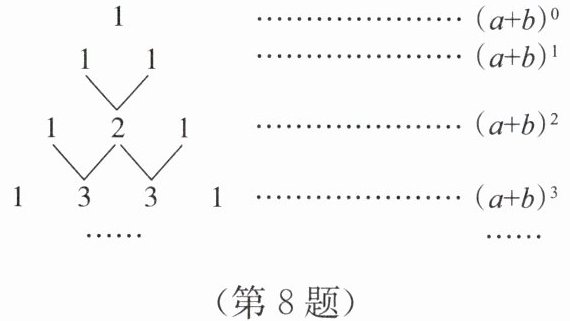 8. (数学思想方法)我国古代数学有许多发现,其中杨辉三角(如图)就是一例。