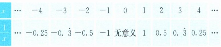 9. 【阅读材料1】为了研究分式$\frac{1}{x}$的值与分母$x$的关系,我们制作了表18.3-1。