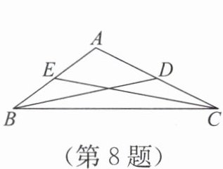8. 如图,在△ABC 中,若 CD= $\frac{1}{3}$ BC=4,BE= $\frac{1}{4}$ BC,BD,CE 是△ABC 的两条中线,则△ABC 的周长是
