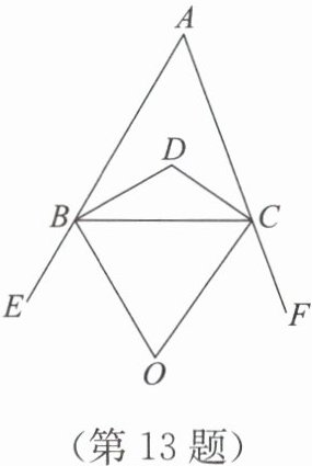 13. 如图,BD,CD 分别是∠ABC,∠ACB 的平分线,BO,CO 分别是△ABC 的外角∠CBE,∠BCF 的平分线.