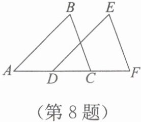 8. 如图,点$A$,$D$,$C$,$F$在同一条直线上,$△ ABC≌△ DEF$.