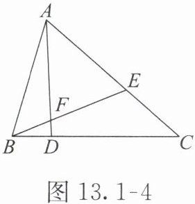 跟踪练习2 如图13.1-4,在$\bigtriangleup ABC$中,点$D$,$E$分别在边$BC$,$AC$上,$AD$,$BE$相交于点$F$,则图中三角形的个数是(