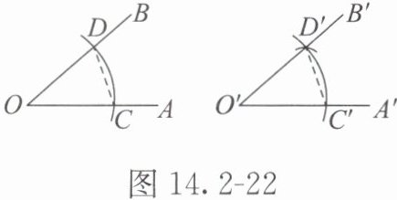 【例 1】用直尺和圆规作一个角等于已知角,如图 14.2-22,能得出∠A'O'B'=∠AOB 的依据是(
