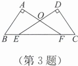 3. 如图,∠A=∠D=90°,点 B,E,F,C 在同一条直线上,AB=CD,BE=CF。求证∠B=∠C。