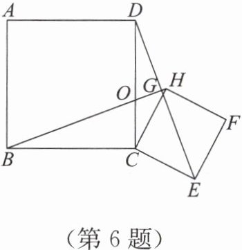 6. 如图,正方形 ABCD 与正方形 CEFH 有公共顶点 C,∠BCD = ∠ECH = 90°,连接 DE,BH,两线相交于点 G,BH 与 CD 相交于点 O。求证: