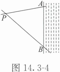 解 如图 14.3-5,作 $∠ APB$ 的平分线,交 $AB$ 于点 $M$,点 $M$ 即为所求水厂的位置。