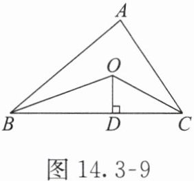 · 跟踪练习2 如图 14.3-9,已知 $△ ABC$ 的周长是 22,$OB$,$OC$ 分别平分 $∠ ABC$ 和 $∠ ACB$,$OD ⊥ BC$,垂足为 $D$,且 $OD=4$,则 $△ ABC$ 的面积是