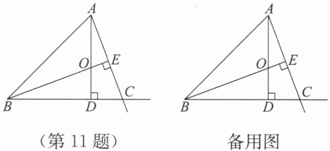 11. 如图,$△ ABC$的两条高$AD$与$BE$相交于点$O$,$AD=BD$,$AC=8$.