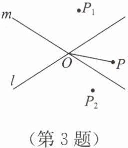 3. 如图,直线 l, m 相交于点 O, P 为这两条直线外一点,且 OP = 2.7. 若点 P 关于直线 l, m 的对称点分别是点 P₁, P₂,则 P₁, P₂ 之间的距离可能是(