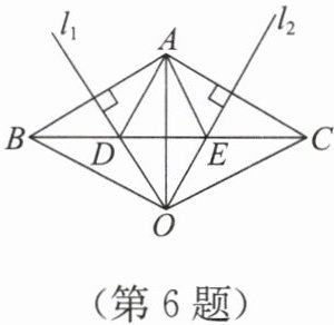 6. 如图,在△ABC 中,边 AB 的垂直平分线 $l_1$ 交 BC 于点 D,边 AC 的垂直平分线 $l_2$ 交 BC 于点 E,$l_1$ 与 $l_2$ 相交于点 O,连接 OA,OB,OC。若△ADE 的周长为 9 cm,△OBC 的周长为 21 cm,求 BC,OA 的长。