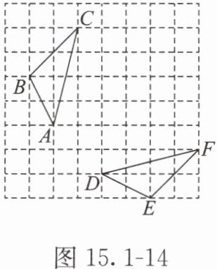 · 跟踪练习2 如图 15.1-14,正方形网格中的△ABC 与△DEF 成轴对称。