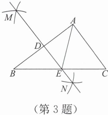 3. 如图,在△ABC 中,分别以顶点 A,B 为圆心,大于 $\frac{1}{2}AB$ 的长为半径作弧,两