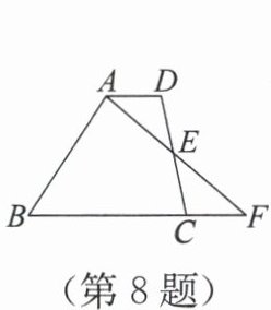 8. (运算能力) 如图,在四边形 ABCD 中,AD//BC,E 为边 CD 的中点,连接 AE,并延长 AE 交 BC 的延长线于点 F。
