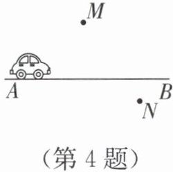 4. 如图,一辆汽车在笔直的公路 AB 上由 A 向 B 行驶,M,N 分别是位于公路 AB 两侧的村庄,当汽车行驶到哪个位置时,与村庄 M,N 的距离相等?