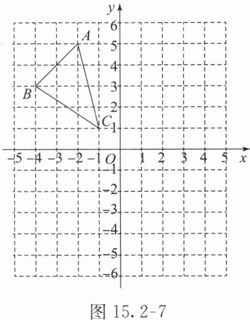● 跟踪练习3 如图 15. 2-7,在平面直角坐标系中,$△ ABC$的三个顶点的坐标分别为$A(-2,5)$,$B(-4,3)$,$C(-1,1)$.