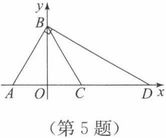 5. 如图,等边三角形ABC的三个顶点都在坐标轴上,A( - 2,0),过点B作BD ⊥ AB,垂线BD交x轴于点D,则点D的坐标为(