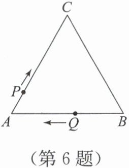 6. 如图,在△ABC中,AB = BC = AC = 12 cm,现有点P,Q分别从点A,B同时出发,沿三角形的边运动,已知点P的速度为1 cm/s,点Q的速度为2 cm/s. 当点Q第一次回到点B时,P,Q两点同时停止运动。