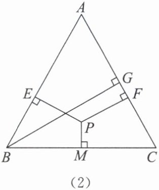 答案:(1)结论:PE + PF + PM = BG。
