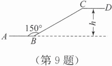 9. (生活中的数学)某商场一楼与二楼之间的手扶电梯示意图如图所示,其中AB,CD分别表示一楼、二楼地面的水平线,∠ABC = 150°,BC的长是8 m,则乘电梯从点B到点C上升的高度h是(