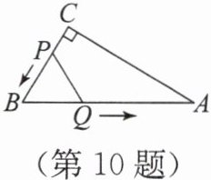 10. 如图,在Rt△ABC中,∠C = 90°,∠B = 60°,AB = 10 cm,动点P从点C出发沿线段CB以1 cm/s的速度向点B运动,同时,动点Q从点B出发,沿线段BA以2 cm/s的速度向点A运动,设运动时间为t s.