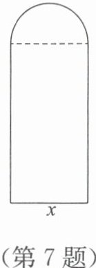 上面半圆的直径为 $ x $ 米,因此半径为 $ \frac{x}{2} $ 米。
