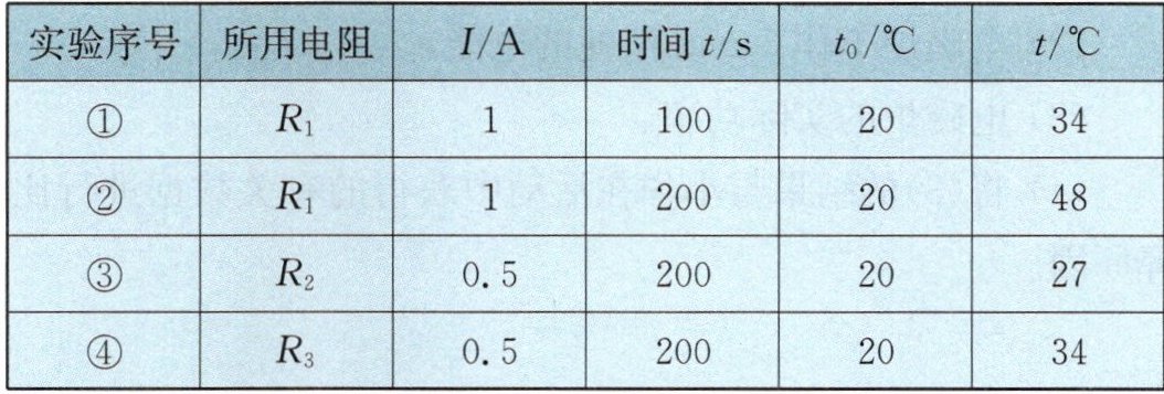 可知导体产生的热量与电流大小有关。实验中,电阻$R_2$产生的热量为