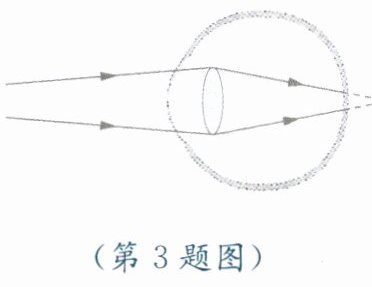 3. 如图所示是有视力缺陷的眼球的成像示意图。图片描述的视力缺陷类型及矫正视力需要配戴的透镜是
