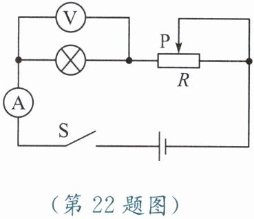 22. 某班同学到实验室做“测定灯泡额定功率”的实验。被测灯泡的额定电压为 3.8 V,电阻约为 10 Ω。实验室有如下器材:电源(电压为 6 V)、电流表(0~0.6 A,0~3 A)、电压表(0~3 V,0~15 V)、开关各一只,导线若干,滑动变阻器三个:$R_{1}$(5 Ω 0.5 A)、$R_{2}$(10 Ω 0.5 A)、$R_{3}$(500 Ω 1 A)。