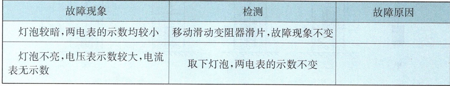 (2) 实验电路接好后,闭合开关时,部分同学发现电路出现故障,主要有下表所列的两种情况,请根据现象和检测结果指出导致故障的可能原因。