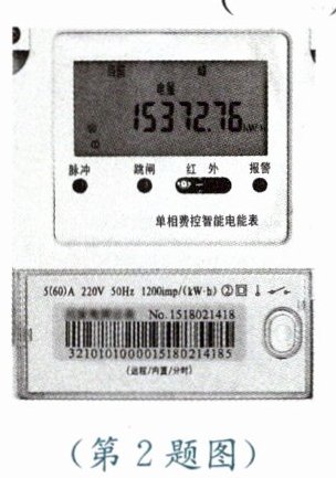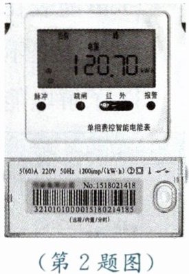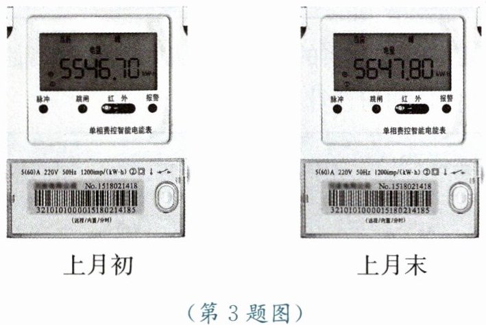 3. 小林家 4 月底电能表的示数为 2 708.70 kW·h,5 月底电能表的示数如图所示,由此可知,他家 5 月份消耗了